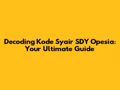 Decoding Kode Syair SDY Opesia: Your Ultimate Guide